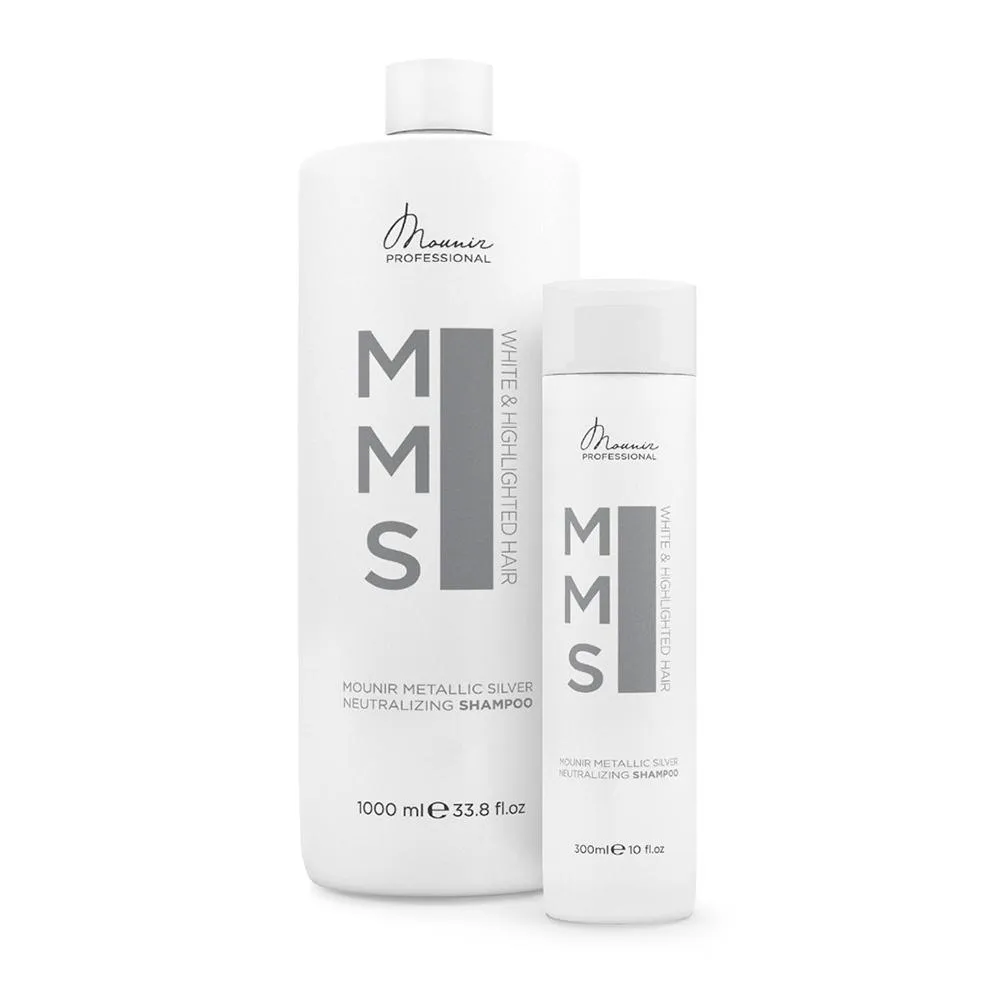 Este un șampon nuantator argintiu metalic, cu o compoziție unică și puternic concentrată, diferit de șampoanele argintii tradiționale. Ideal pentru corectarea nuanțelor nedorite în părul blond, MMS elimină eficient tonurile de portocaliu și galben, depunând pigmenți care transformă culoarea în gri sau bej. Acest șampon este o soluție excelentă și pentru decolorări, oferind rezultate mai albe fără a folosi nuantatori suplimentari. De asemenea, este eficient în cazul părului saten de nivel 5 cu portocaliu pe vârfuri, eliminând nuanțele de aramă și portocaliu. MMS se distinge pe piață ca fiind unul dintre cele mai puternice șampoane argintii, adresându-se unei varietăți de provocări ale părului blond. Recomandat pentru toate tipurile de scalp.